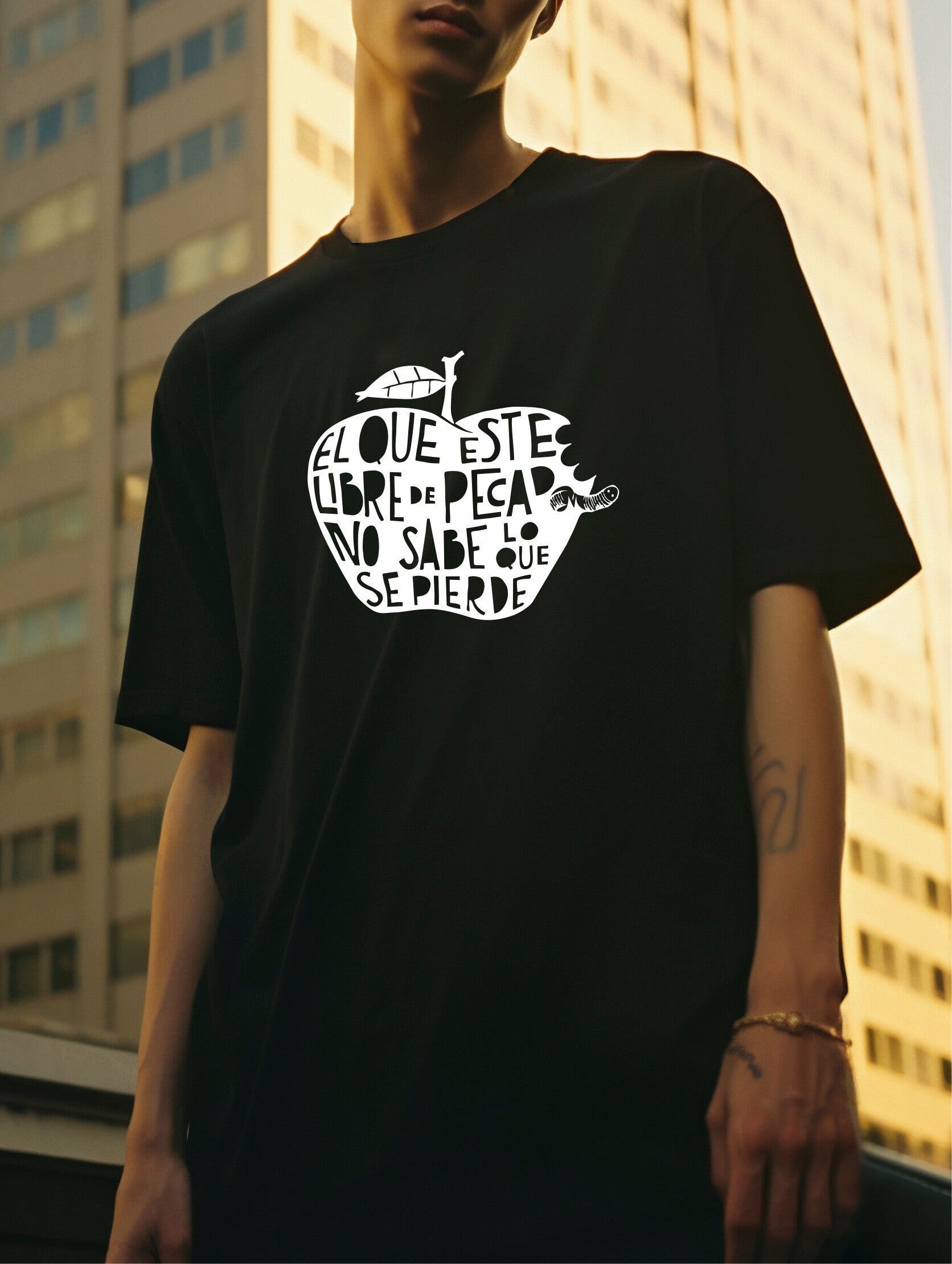 Camiseta de manga corta tubular. Cuello redondo en canalé 1x1 con cubrecosturas en cuello del mismo tejido.